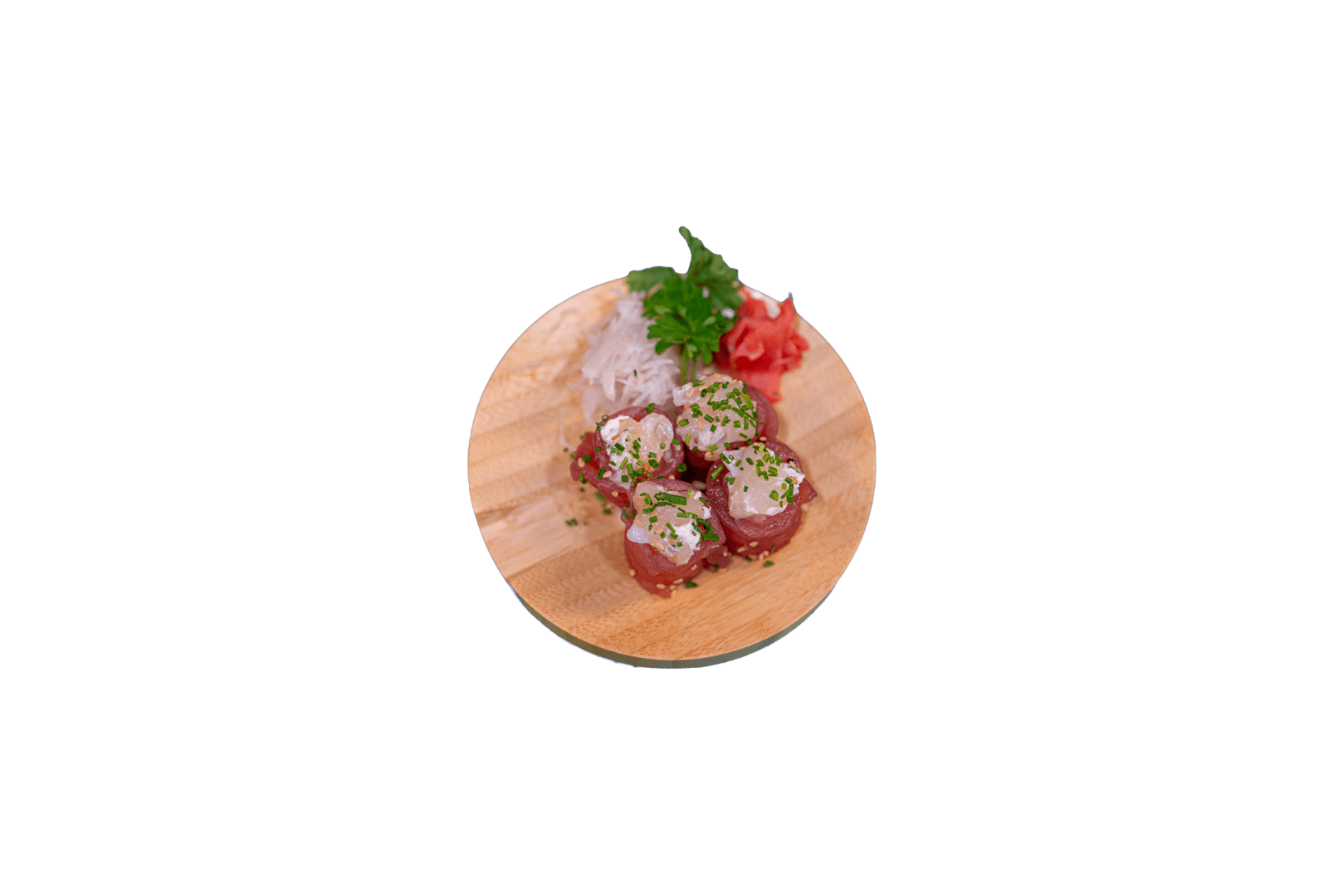 Uma combinação luxuosa: atum, vieira e o azeite de trufas. Pura sofisticação.
